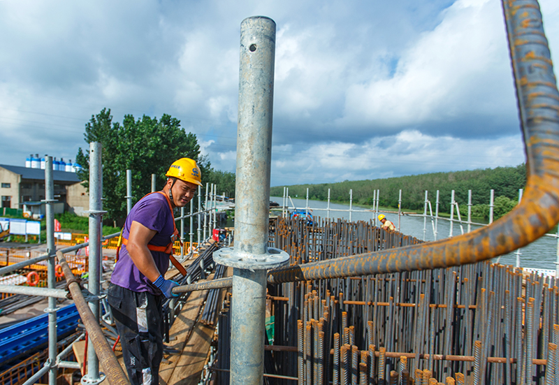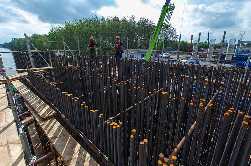 大桥主墩钢筋工既是力气活,也是细心活,尺寸、位置都不容一丝差错